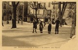 Sur la deuxième, les panneaux dans les arbres, en haut à gauche, indiquent :" G.S.U Patinoire - Défense absolue de circuler sans patins " et "GSU Patinoire - Les carnets de billets sont obligatoires pour l'accès de la patinoire - en vente au Café de Paris - au Bazar Universel "
