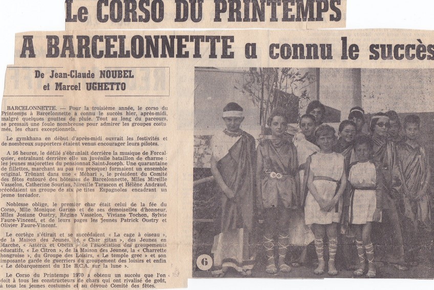 Michel VASSELON m'a ensuite adressé un article de presse (Le Provençal du 18 mai 1970) qu'il a lui-même reçu de Jean-Jacques DE AGOSTINI et qui permet d'en savoir plus sur cette manifestation.