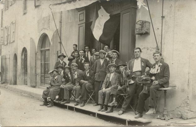 Un sympathique groupe de "classards" 1924 devant le Café des Voyageurs.