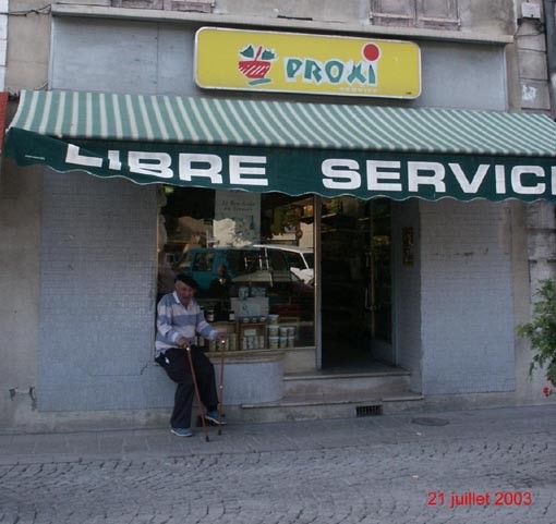 L'épicerie "PROXI" de M. et Mme BROCHIER avec sur la photo "Campagne", une figure de Barcelonnette.